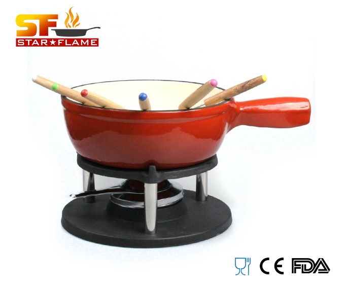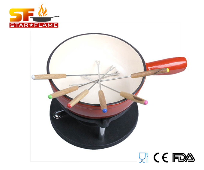 6. Fondue set, fondue oală, fondue din fontă, email fondue